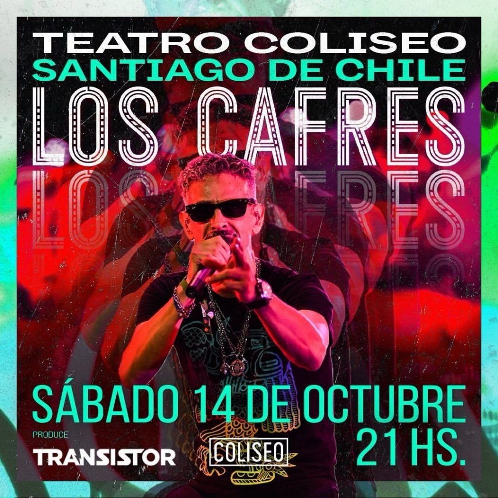 Llega a Teatro Coliseo toda la energía de Los Cafres, una de las bandas fundacionales del reggae latinoamericano, que se presentará en Chile el próximo 14 de octubre. La agrupación oriunda de Buenos Aires y pionera en interpretar el reggae roots en español, hará un repaso de su trayectoria que alcanza más de 30 años de música, compilados en 14 discos, muchos de los cuales lideraron los charts de venta y superaron los status de Oro y Platino.