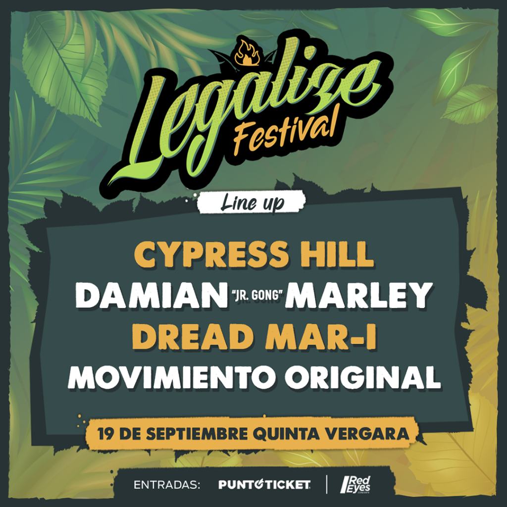 La nueva versión del festival chileno, que en su última edición tuvo a Orishas, Combo Tortuga, Portavoz, entre otros, regresa para realizarse en la Quinta Vergara el próximo martes 19 de septiembre desde las 16.00 horas. La jornada estará marcada por la presencia de importantes músicos, entre los que destacan Cypress Hill, Damian Marley quien regresa a nuestro país luego de muchos años, el argentino Dread Mar I y los chilenos de Movimiento Original.