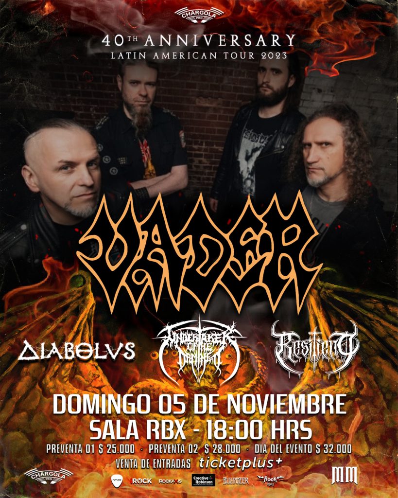 A poco más de tres meses del esperado concierto, la producción ha confirmado la presencia de tres bandas nacionales para la apertura: Diabolvs, Undertaker of the Damned y Resilient. En esta brutal velada que ocurrirá el próximo 5 de noviembre en la sala RBX, las tres entregarán al público lo mejor de su repertorio para así dar la mejor previa a la presentación de Vader en nuestro país.