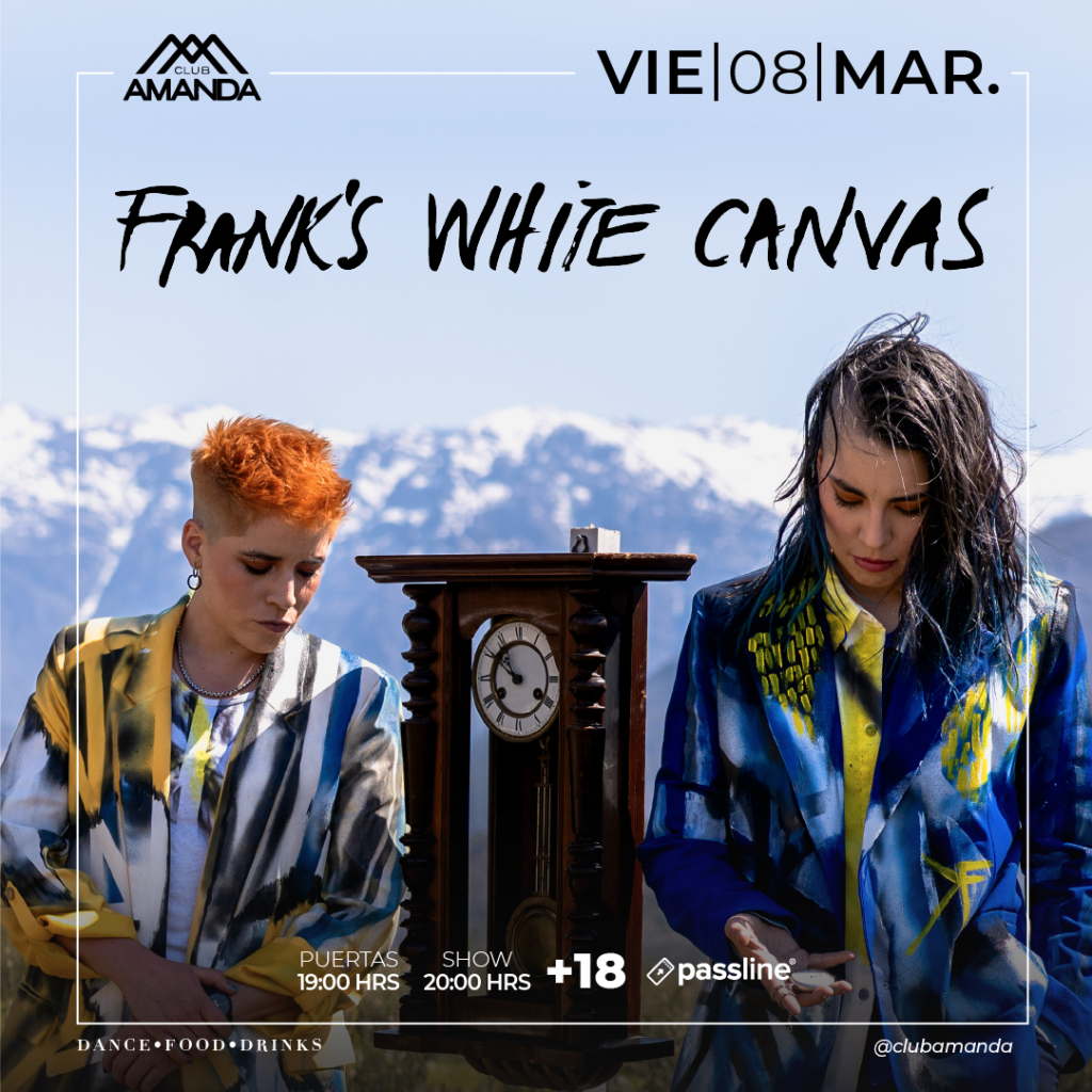 El viernes 8 de marzo, nos unimos a la conmemoración del Día Internacional de la Mujer con la presentación del dúo de rock alternativo FRANK’S WHITE CANVAS, quienes están revolucionando la escena musical chilena. Con un potente sonido y comprometidas letras, la banda es un referente para las mujeres y la diversidad.
