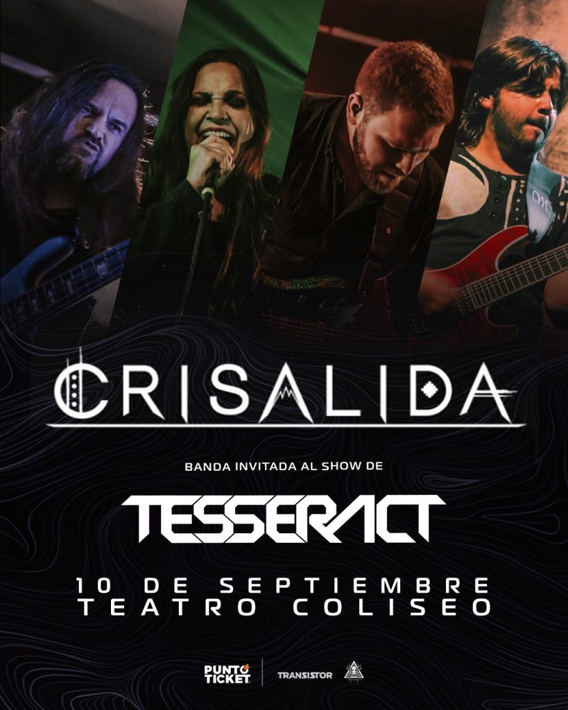 TesseracT se ha erigido como una de las más importantes agrupaciones progresivas del último tiempo y por ello su próxima presentación en Chile requería de unos invitados nacionales que estuvieran a la altura de la noche. Los elegidos son Crisálida, representativa banda nacional que con sus 27 años de trayectoria son emblemas del prog metal criollo. La fecha para agendar es el martes 10 de septiembre en el Teatro Coliseo.