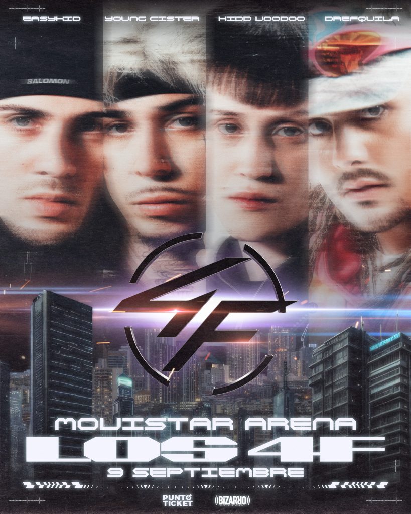¡Uno de los shows más esperados del año! El talento nacional se une para lo que será un increíble concierto en nuestro país. Se trata de Los 4F (Kidd Voodoo, Young Cister, Easykid y DrefQuila) quienes se presentarán este 9 de septiembre en Movistar Arena.