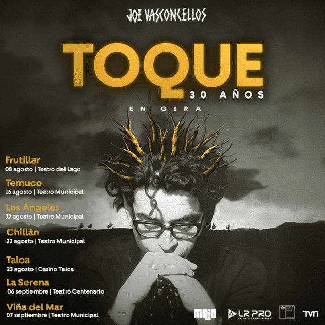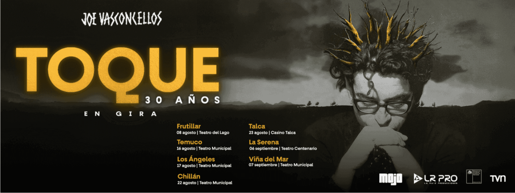 Durante este 2025 Joe Vasconcellos estará celebrando las tres décadas de ‘Toque’ (1995), uno de los lanzamientos más trascendentes de su generación en el rock chileno y que desprendió una serie de éxitos sucesivos: ‘Mágico’, ‘Huellas’, ‘Las seis’, ‘Sed de gol’, ‘Sólo por esta noche” y ‘Quieto’, temas diversos que lograron el crossover radial y que con los años se volvieron clásicas entre emisoras de rock, música tropical y radios populares